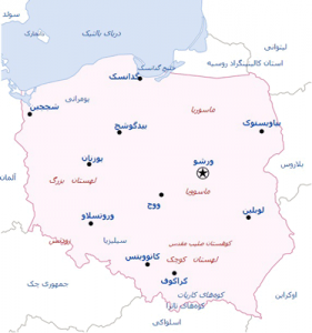معرفی کشور لهستان | کشور لهستان: کشور لهستان در مرکز اروپا، از غرب با آلمان، از جنوب غربی با جمهوری چک، از جنوب با اسلوواکی، از شمال شرقی با لیتوانی و روسیه (منطقه برونبومی کالینینگراد)، از شرق با بلاروس، از جنوب شرقی با اوکراین و از شمال با دریای بالتیک همسایه است.